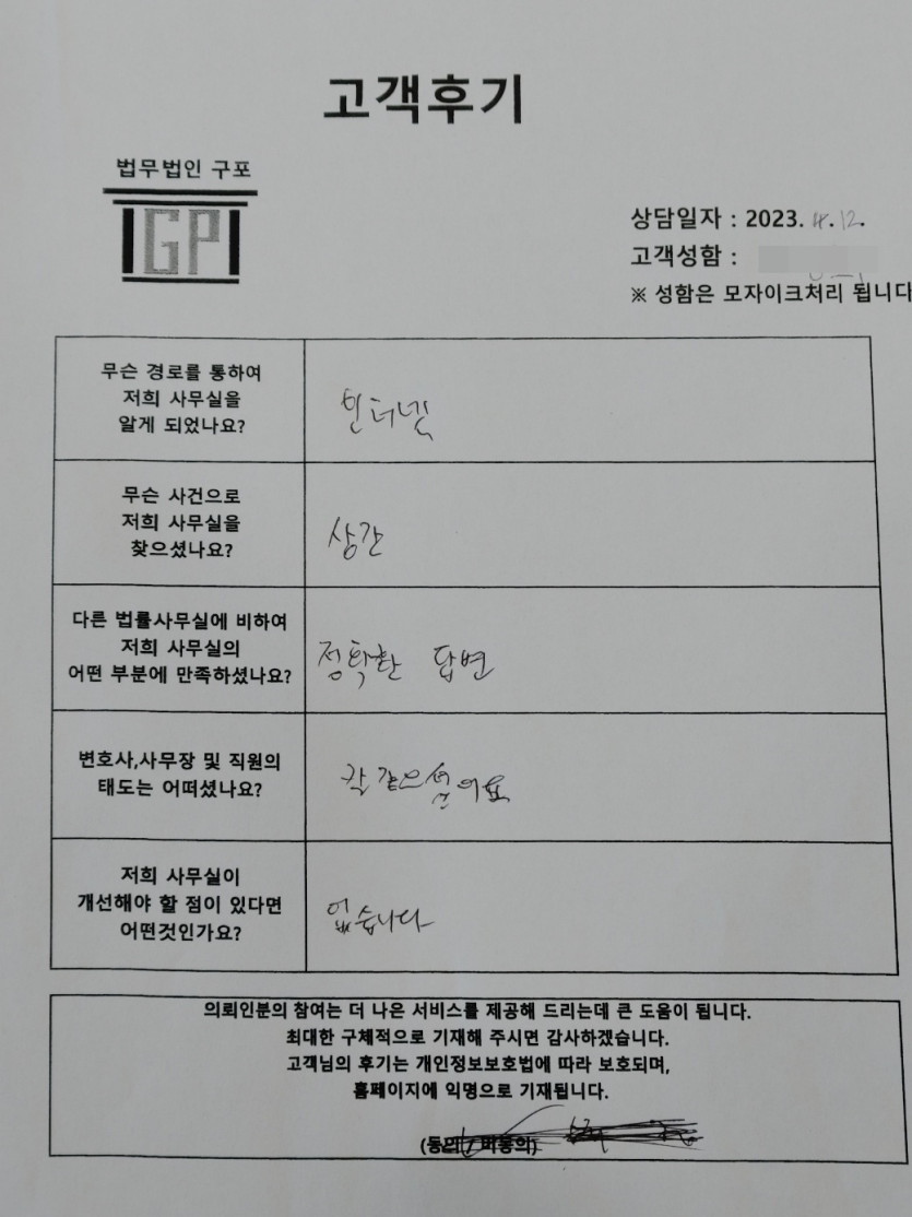 안녕하세요. 법무법인 구포입니다.