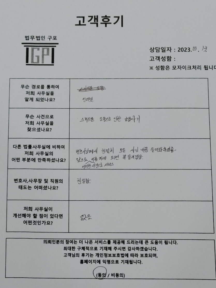 클릭해서 더보기 => 형사(스마트폰금융사기 방문상담) 의뢰인분의 실제 고객후기