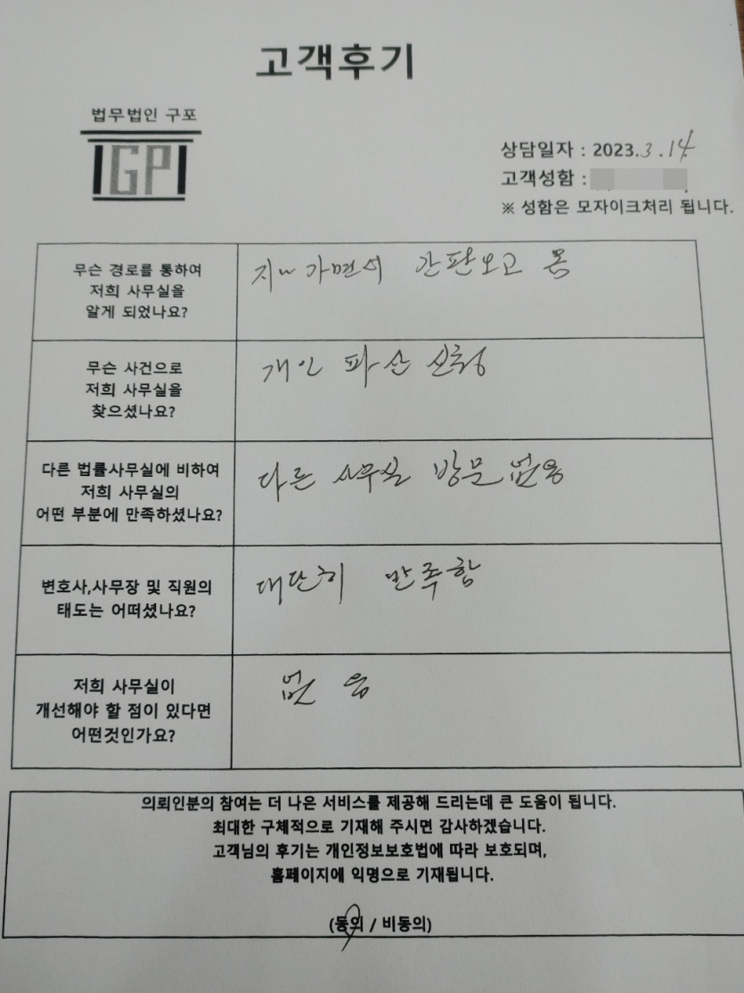 클릭해서 더보기 => (개인파산 및 회생 방문상담) 의뢰인분의 실제 고객후기
