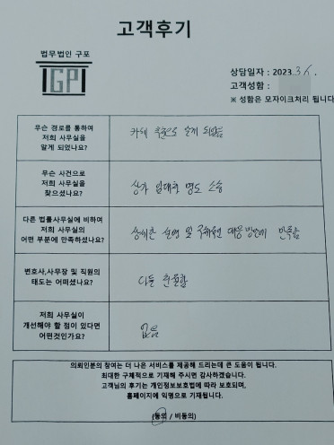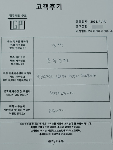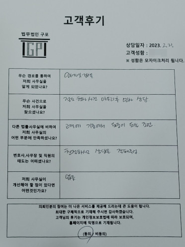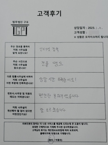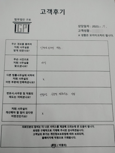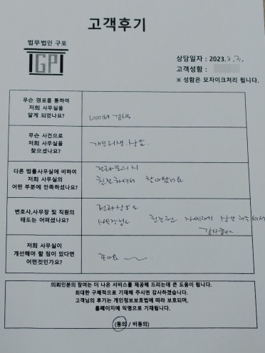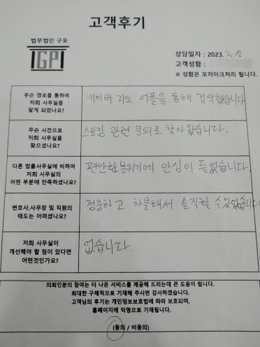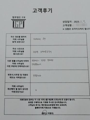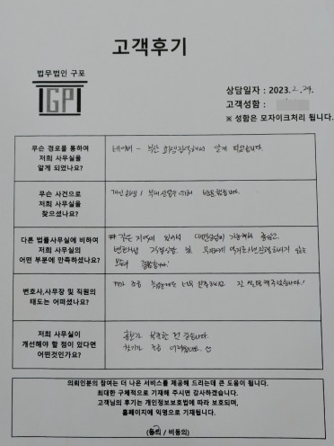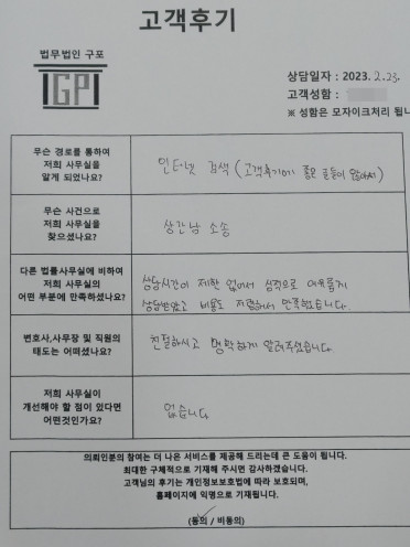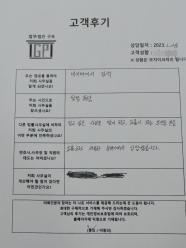 클릭해서 더보기 => 형사(금전사기 방문상담) 의뢰인분의 실제 고객후기