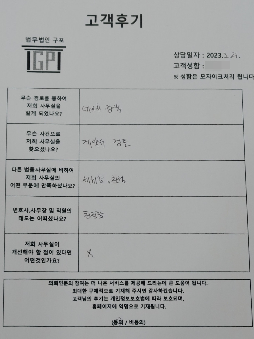 클릭해서 더보기 => 민사(계약서검토 방문상담) 의뢰인분의 실제 고객후기