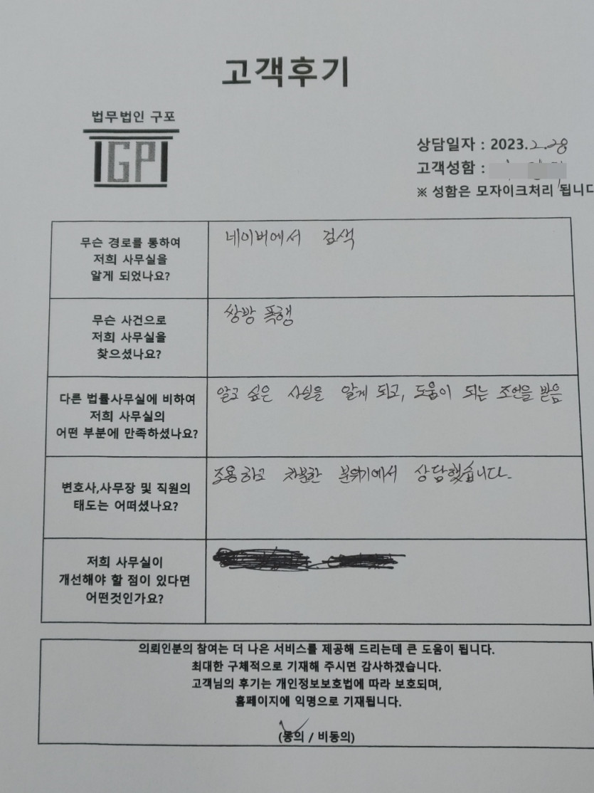 클릭해서 더보기 => 형사(쌍방폭행 및 상해 방문상담) 의뢰인분의 실제 고객후기