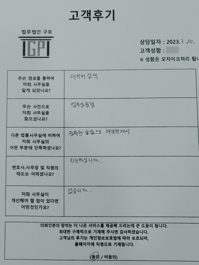 안녕하세요. 법무법인 구포입니다.