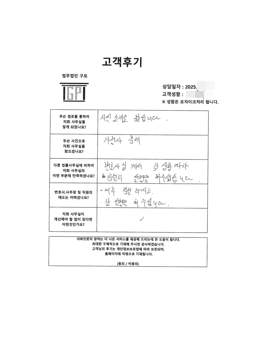 [배우자외도] 상간소송 - 실제 의뢰인분의 고객후기