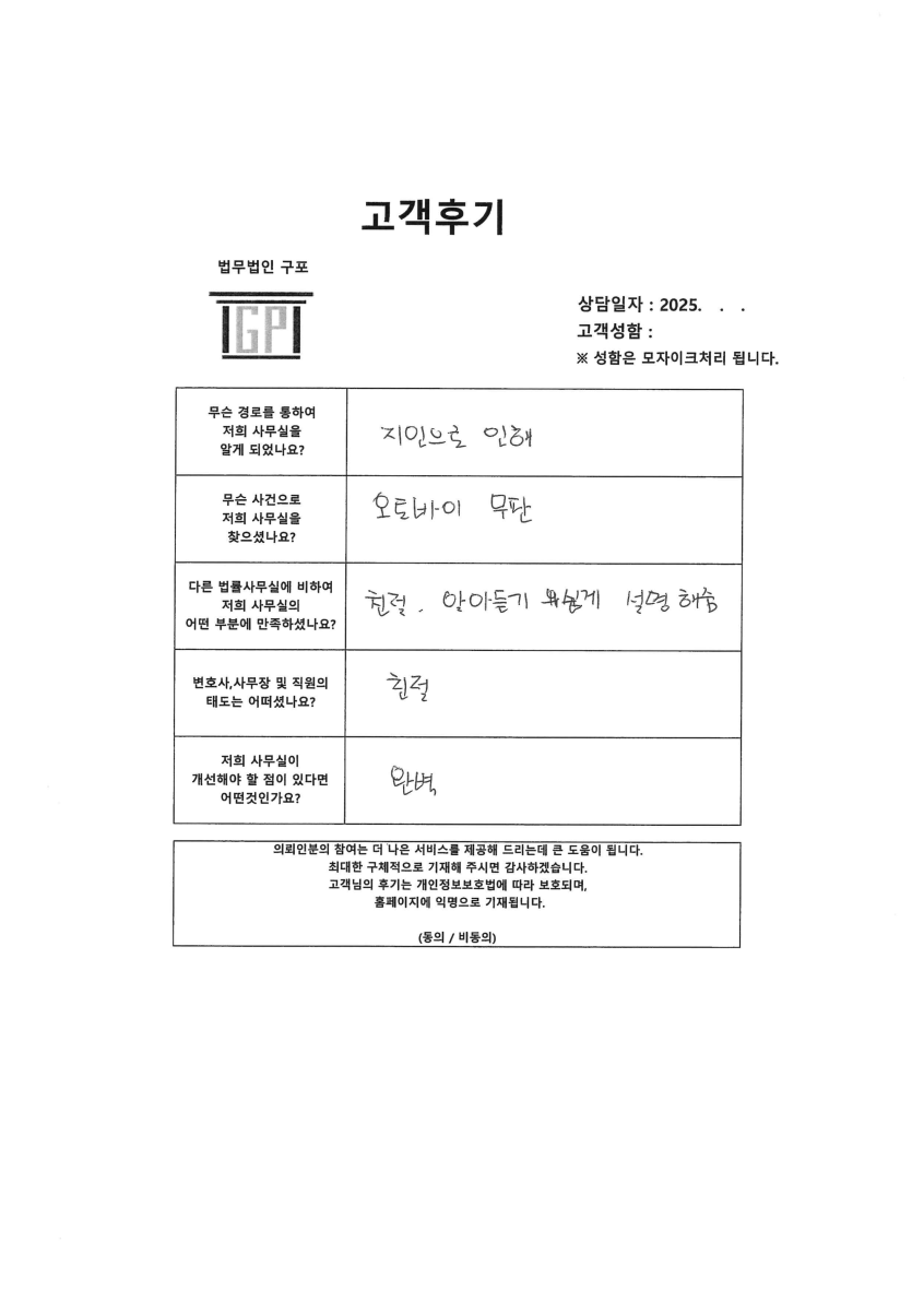 [형사] 오토바이 불법번호판 처벌 - 실제 고객님의 고객후기